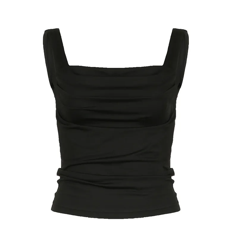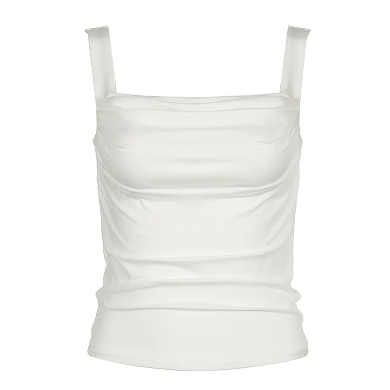 Women Fashion Solid Color Square Collar Creased Crop Top Camisole